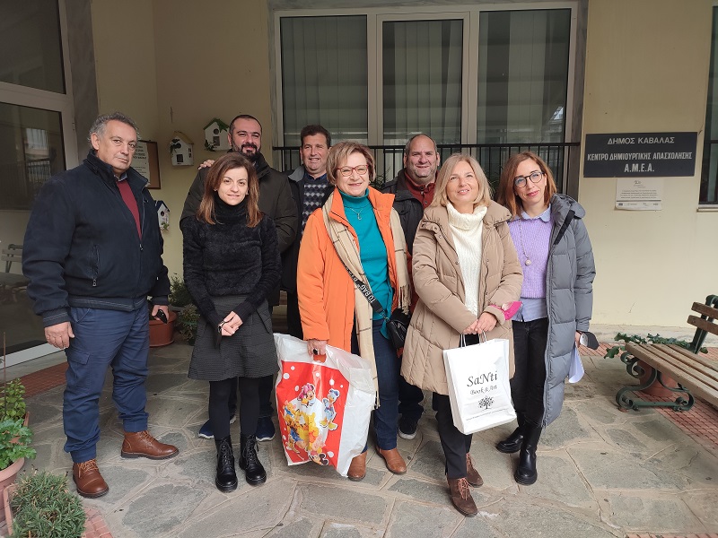 Την Παρασκευή 13/01/2023, τα μέλη του Διοικητικού Συμβουλίου του ΚΟΙΣΠΕ Καβάλας επισκέφθηκαν τους χώρους του Κέντρου Δημιουργικής Απασχόλησης Ατόμων με Αναπηρία «ΚΔΑΠ – ΜΕΑ» και προσέφεραν χρήσιμο εξοπλισμό, δώρα, παιχνίδια, γραφική ύλη κ.ά. στους/τις ωφελούμενους/-ες και αντάλλαξαν ευχές για το νέο έτος. Από τον ΚΟΙΣΠΕ Καβάλας παρευρέθηκαν οι Αγγελική Δημητρακάκη, Πρόεδρος, Σμάραγδος Κρεμύδας, Αντιπρόεδρος, Αντώνιος Κώστας, Γεν. Γραμματέας, Θεοδώρα Καγιάννη, Ταμίας, Παντελίδης Ιωάννης, Μέλος και Ενίσογλου Σοφία, Στέλεχος Διοίκησης και από το ΚΔΑΠ- ΜΕΑ, οι Αλέξανδρος Βρεττός, Διευθυντής Αθλητισμού και Παιδείας της «Δημωφέλεια» και η Μίσα Μισιριάν Κοινωνική Λειτουργός – Υπεύθυνη του ΚΔΑΠ – ΜΕΑ.