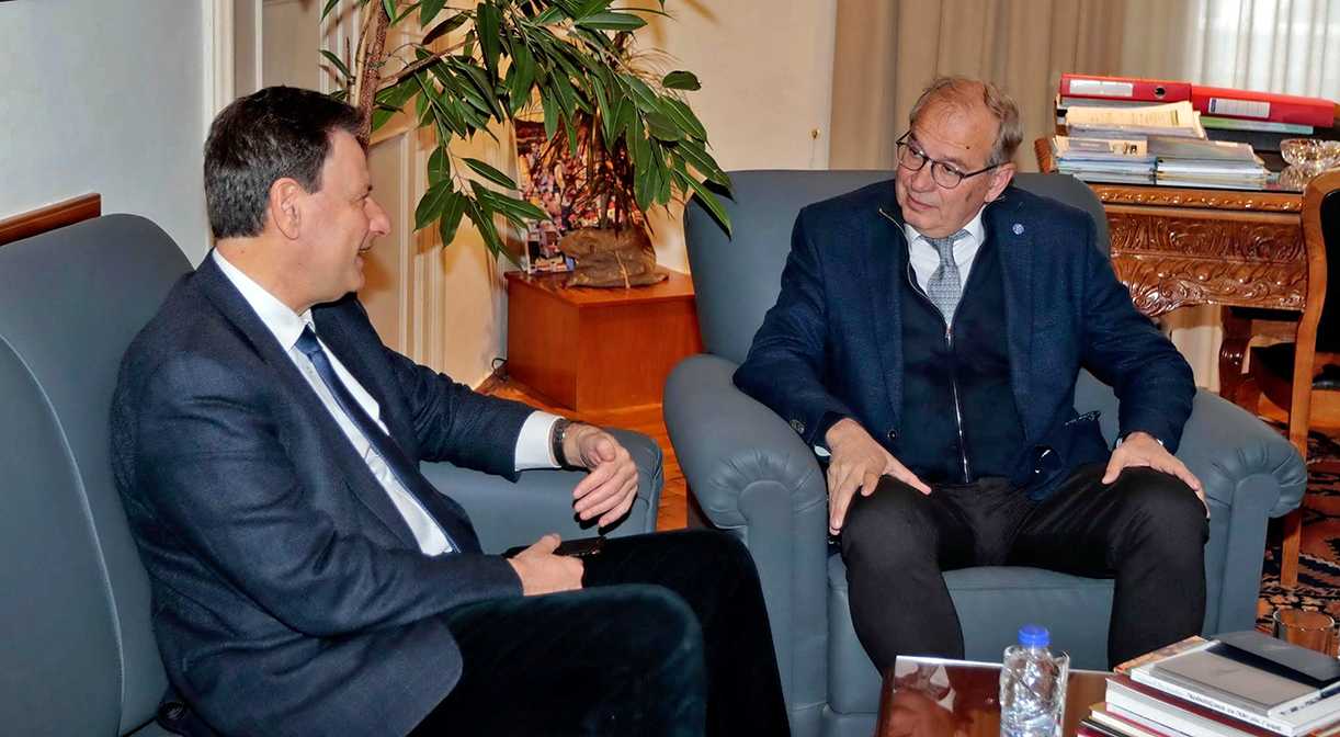 Συνάντηση του Θόδωρου Σκυλακάκη με τον Θόδωρο Μουριάδη στο Δημαρχείο της Καβάλας