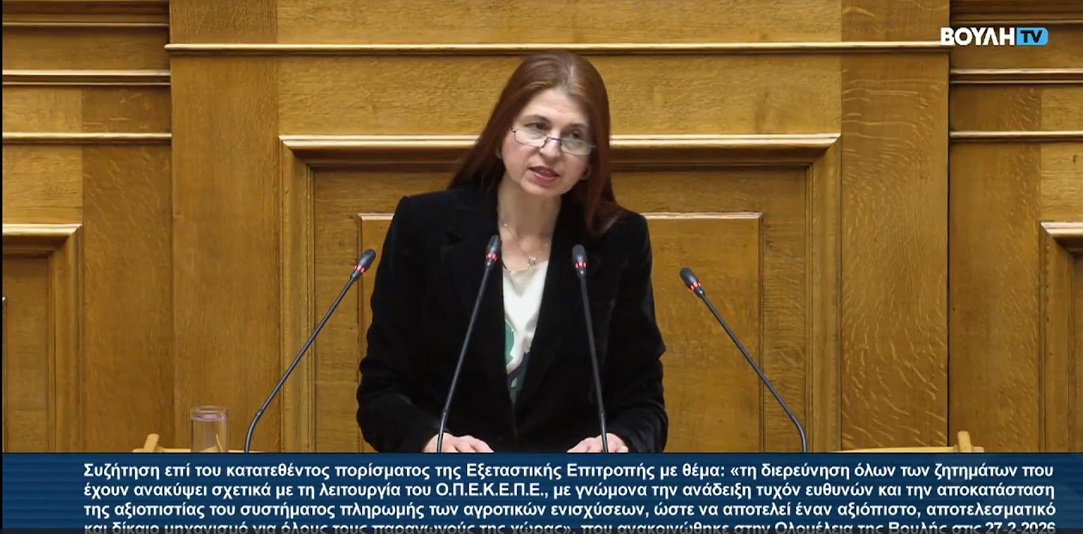Στη συζήτηση για το κατατεθέν Πόρισμα της Εξεταστικής Επιτροπής για τον ΟΠΕΚΕΠΕ, η οποία πραγματοποιήθηκε την Τρίτη 10 Μαρτίου 2026 στην Ολομέλεια του Κοινοβουλίου, τοποθετήθηκε η Βουλευτής Π.Ε. Καβάλας της Νέας Δημοκρατίας Αγγελική Δεληκάρη. Η κυρία Δεληκάρη, ως μέλος της Επιτροπής, στάθηκε στα συμπεράσματα που αποκόμισε μετά το πέρας των εργασιών της Επιτροπής.