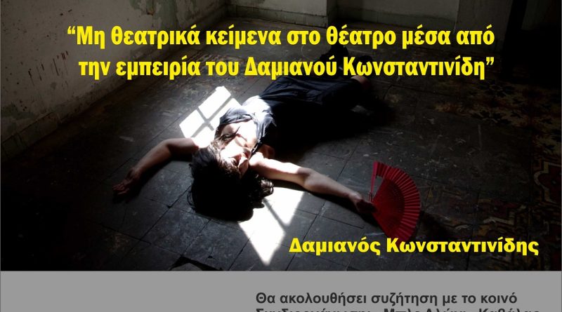 Εκδήλωση με τίτλο «Μη θεατρικά κείμενα στο θέατρο μέσα από την εμπειρία του Δαμιανού Κωνσταντινίδη»