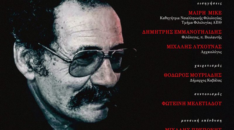 Εισηγήσεις: – Μαίρη Μικέ, Καθηγήτρια Νεοελληνικής Φιλολογίας στο Τμήμα Φιλολογίας (ΑΠΘ) – Συγγραφέας. – Δημήτριος Εμμανουηλίδης, π. Βουλευτής – Φιλόλογος. – Μιχάλης Λυχούνας, Αρχαιολόγος. Χαιρετισμός: Δήμαρχος Καβάλας Θεόδωρος Μουριάδης. Μουσική επένδυση: Μιχάλης Πρεπόνης & Γιάννης Τσίγκας