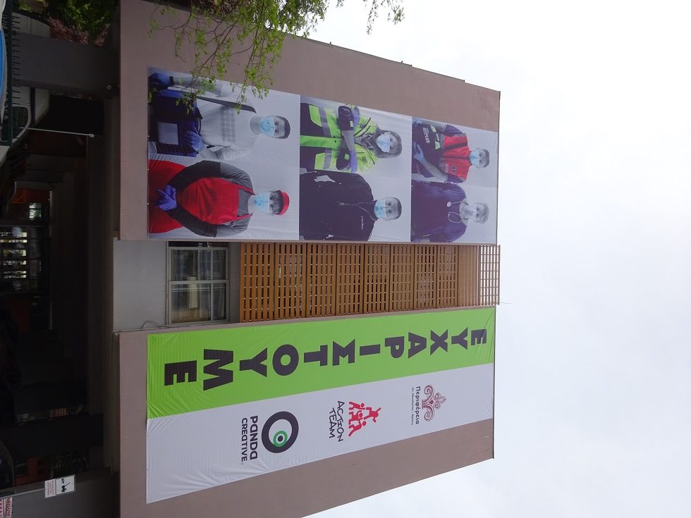 Ευχαριστήριο μπάνερ της Π.Ε. Καβάλας ως ένδειξη αναγνώρισης όλων όσων εργάστηκαν την περίοδο έξαρσης του κορωνοϊού