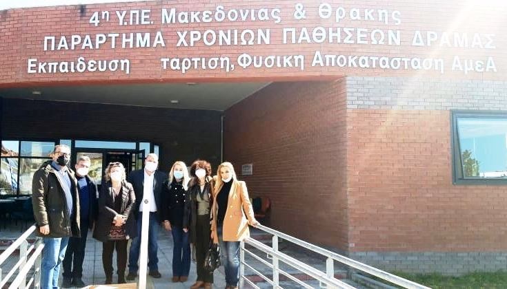 Στην επίσκεψη στο Παράρτημα Χρονίων Παθήσεων ΑμεΑ στη Δράμα παραβρέθηκαν, από τη Διοικούσα Επιτροπή, ο Πρόεδρος Απόστολος Παυλίδης και το μέλος Δημήτρης Κυριαζίδης και από τη Νομαρχιακή Επιτροπή Δράμας, ο Πρόεδρος Κώστας Παράσχου και το μέλος Νικολέτα Εμμανουηλίδου.
