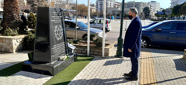 Ο Πρόεδρος του Δημοτικού Συμβουλίου Καβάλας, Κώστας Πεφάνης, τιμώντας τη μνήμη των 1.484 Εβραίων της Καβάλας που άφησαν την τελευταία τους πνοή στο στρατόπεδο συγκέντρωσης της Τρεμπλίνκα κατά τη διάρκεια του Δεύτερου Παγκοσμίου Πολέμου, κατέθεσε λουλούδια στο Εβραϊκό μνημείο της Καβάλας.