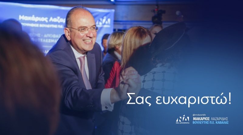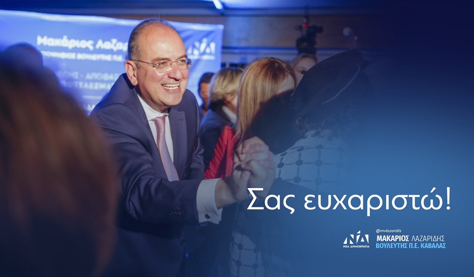 Με ανάρτησή του στον προσωπικό του λογαριασμό στο Facebook, ο Βουλευτής Π.Ε. Καβάλας της Νέας Δημοκρατίας, κ. Μακάριος Λαζαρίδης, απευθυνόμενος στους πολίτες και αναφερόμενος στις εκλογές της περασμένης Κυριακής, σημειώνει: