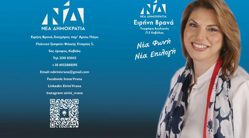 “Οι πολίτες μου έδωσαν το πράσινο φως οπότε συνεχίζω” δηλώνει η υποψήφια βουλευτής της ΝΔ Ειρήνη Βρανά