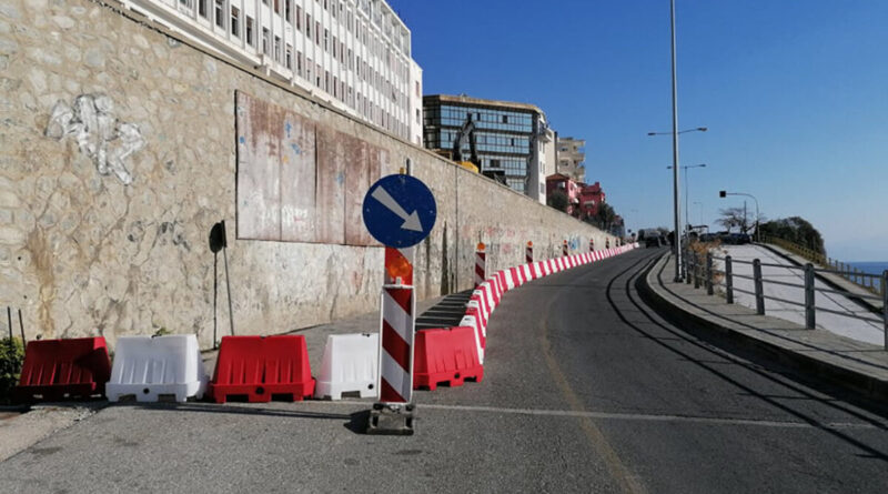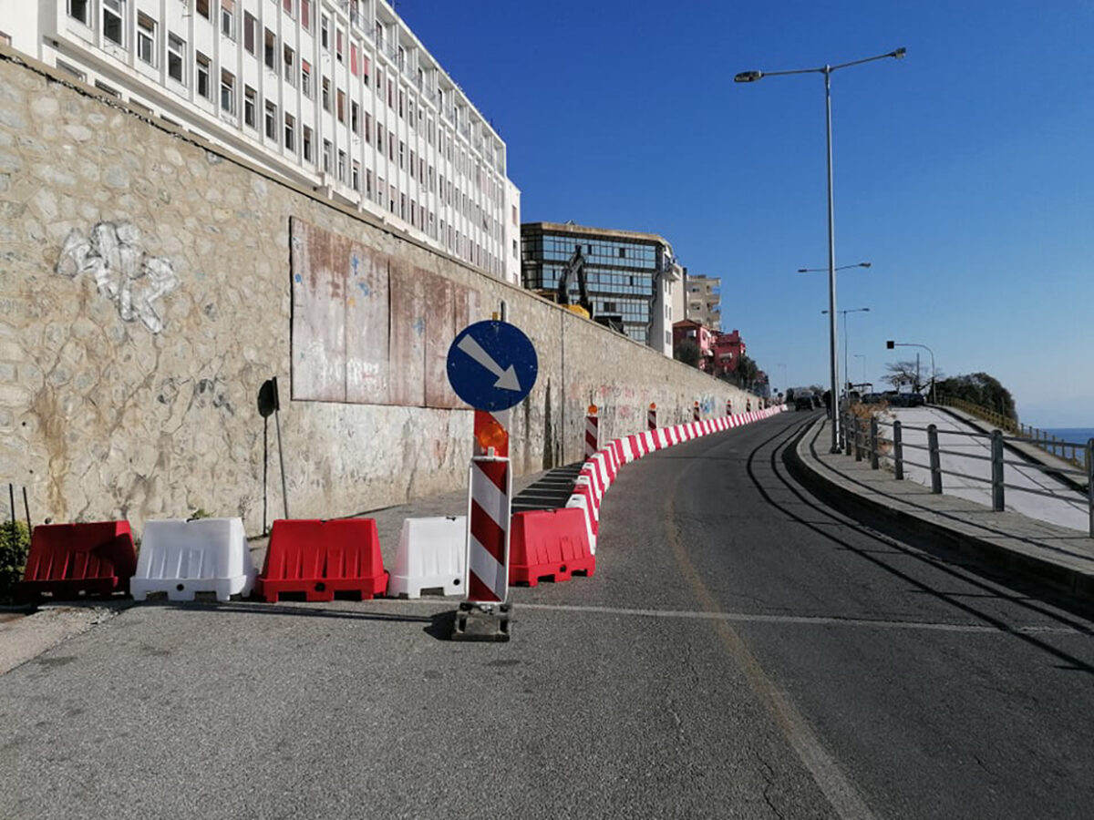 2.- Κατά τη διάρκεια των εργασιών με ευθύνη του αναδόχου του έργου να τοποθετηθεί κατάλληλη σήμανση, από τη συμβολή της οδού Αμερικανικού Ερυθρού Σταυρού με την οδό Παλαιού Υδραγωγείου και έως τη συμβολή της ίδιας με την οδό Αγ.Βαρβάρας, ώστε να επιτευχθεί στένωση του χερσαίου τμήματος της οδού, διατηρώντας μία λωρίδα κυκλοφορίας ελάχιστου πλάτους 3,50 μέτρων για την εξυπηρέτηση επιβατικών και βαρέων οχημάτων, συνολικού μήκους 350 μέτρων. Η σήμανση θα παραμένει και κατά τη διάρκεια της νύχτας.