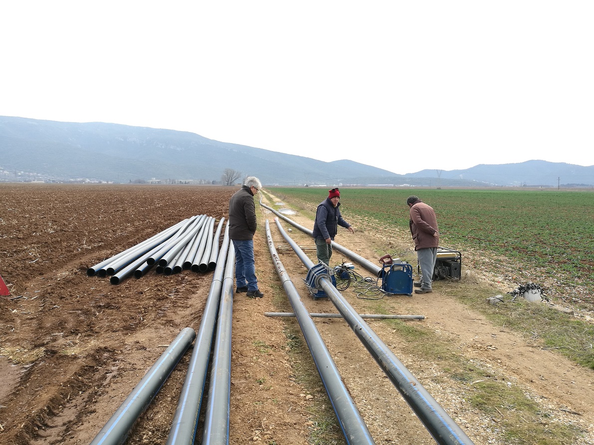• Εκτέλεση έργου κατασκευής νέου δικτύου άρδευσης στην περιοχή των αγροκτημάτων Πολυστύλου – Δάτου, το οποίο θα δώσει τη δυνατότητα άρδευσης περίπου 400 στρεμμάτων.