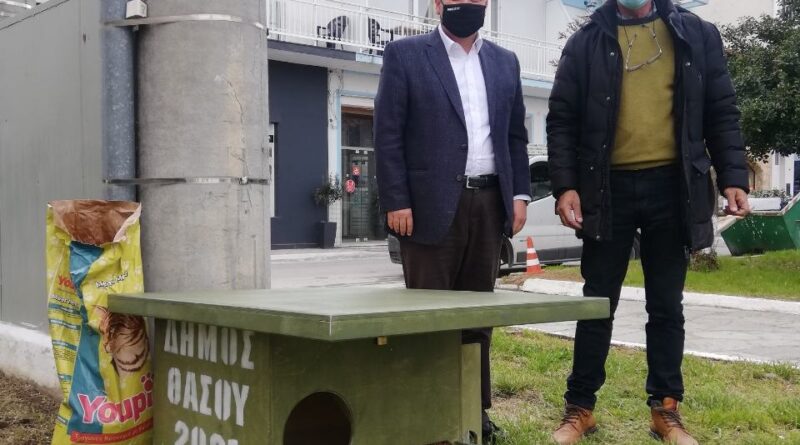 Ο Δήμος Θάσου, αναγνωρίζοντας την ανάγκη προστασίας των αδέσποτων ζώων στην περιοχή ευθύνης του, προέβη στην προμήθεια 15 μικρών σπιτιών φιλοξενίας αδέσποτων ζώων, στα οποία μπορούν να καταφύγουν και να σιτιστούν τα αδέσποτα ζώα.