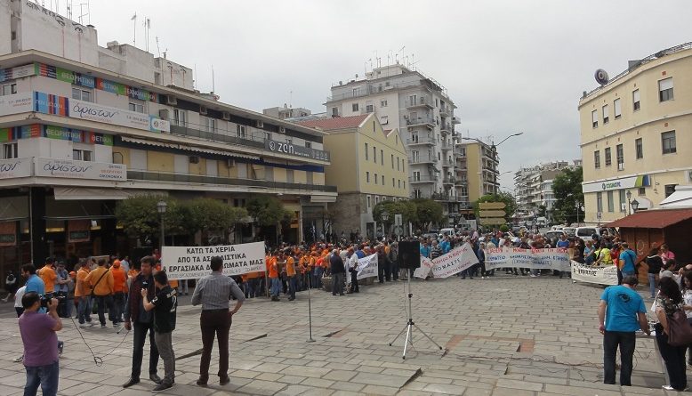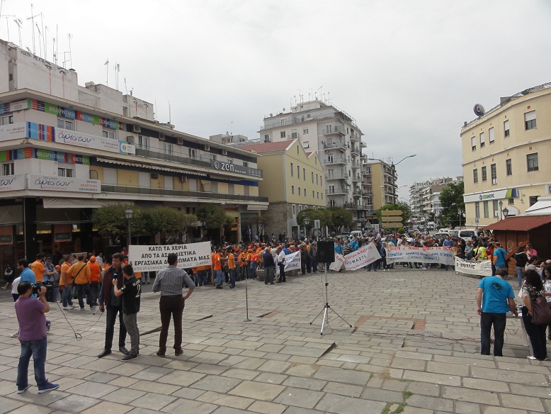 Συγκέντρωση διαμαρτυρίας πραγματοποιήθηκε σήμερα στην Πλατεία Καπνεργάτη  στο πλαίσιο της 24ωρης απεργίας που κήρυξαν η ΓΣΕΕ και η ΑΔΕΔΥ. Η παρουσία του κόσμου ήταν αξιοπρεπής καθώς συμμετείχαν οι απολυμένοι της ΒΦΛ και οι εργαζόμενοι στην καβάλα Oil.