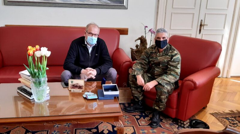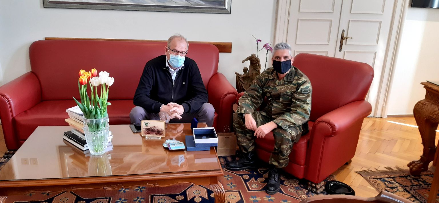 Με τον απερχόμενο Διοικητή της ΧΧΤΘ Μεραρχίας “Μακεδονία”, υποστράτηγο, Παντελή Κατσαΐτη, ο οποίος αναλαμβάνει καθήκοντα Διευθυντή στη Διεύθυνση Ιππικού Τεθωρακισμένων του ΓΕΣ, συναντήθηκε το μεσημέρι της Τέταρτης 10 Μαρτίου 2021, ο Δήμαρχος Καβάλας, Θόδωρος Μουριάδης
