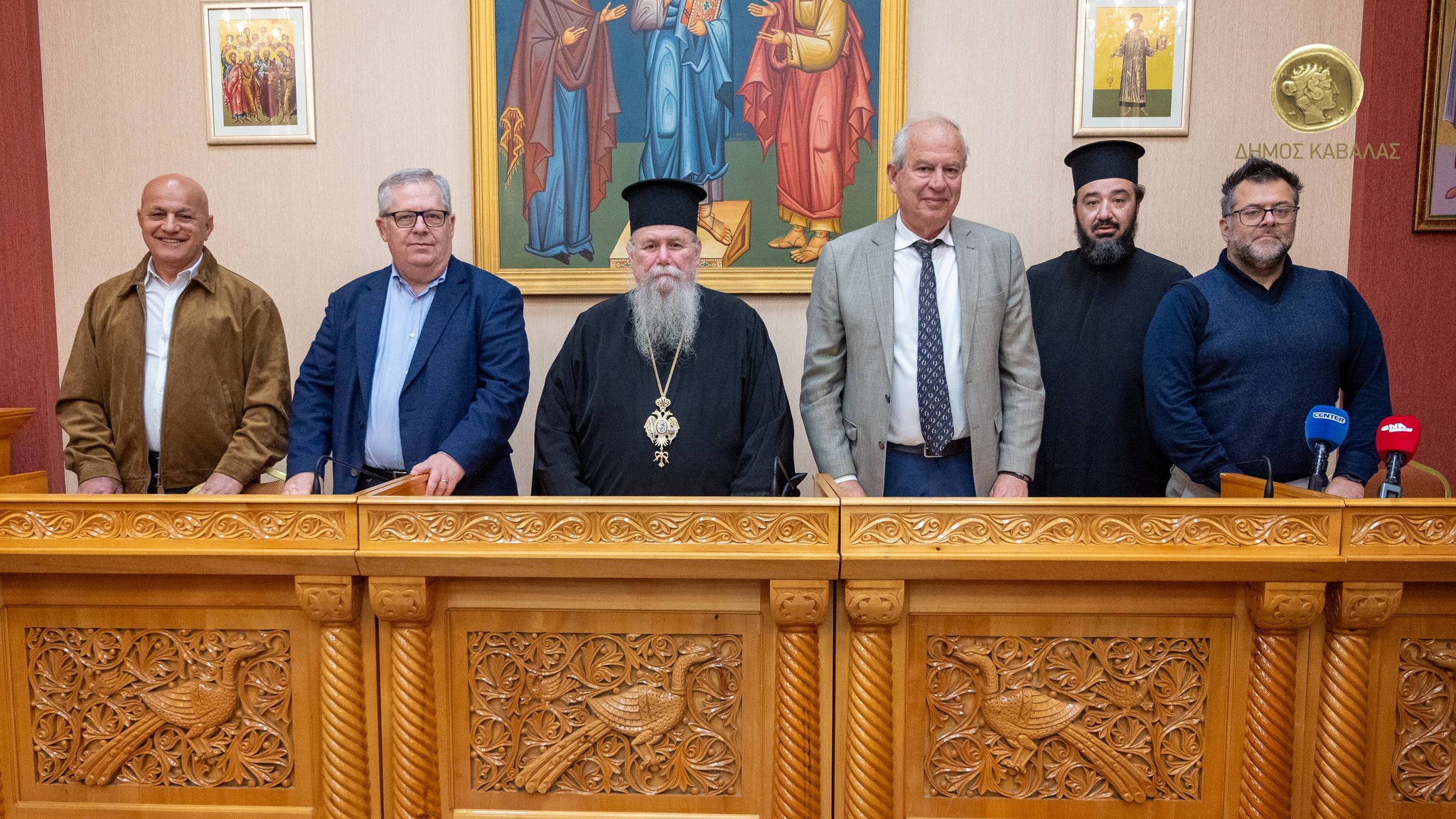 Συνέντευξη Τύπου παραχώρησαν το μεσημέρι της Παρασκευής 17 Απριλίου ο Σεβασμιώτατος Μητροπολίτης Φιλίππων, Νεαπόλεως και Θάσου κ. Στέφανος, ο Δήμαρχος Καβάλας, Θόδωρος Μουριάδης και ο Αντιπεριφερειάρχης Καβάλας, Θόδωρος Μαρκόπουλος, προκειμένου να παρουσιάσουν το επίσημο πρόγραμμα υποδοχής της εικόνας της Παναγίας Σουμελά, την Πέμπτη 23 Απριλίου 2026, στον Δημοτικό Κήπο Καβάλας.