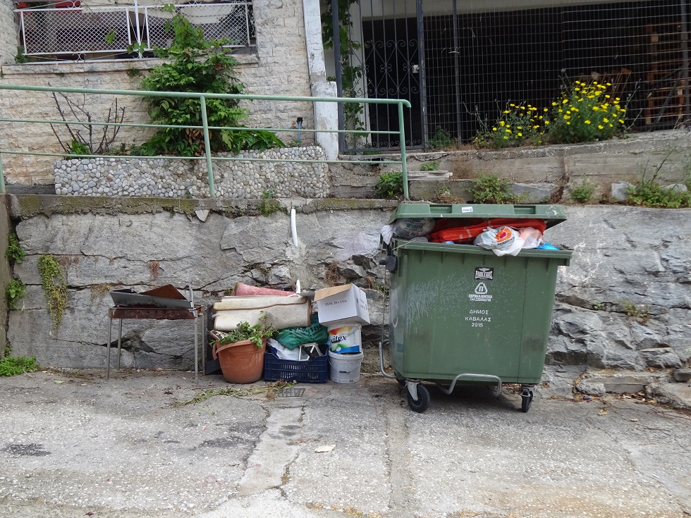 Στην συνοικία του προφήτη Ηλία, στην οδό Ιφιγενείας συχνά πυκνά κάτοικος της περιοχής ξεφορτώνεται ότι του περισσεύει στον κάδο απορριμμάτων και έξω από αυτόν….. Θα τον σταματήσει κανείς;