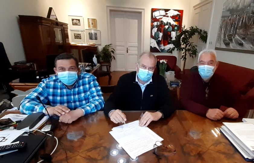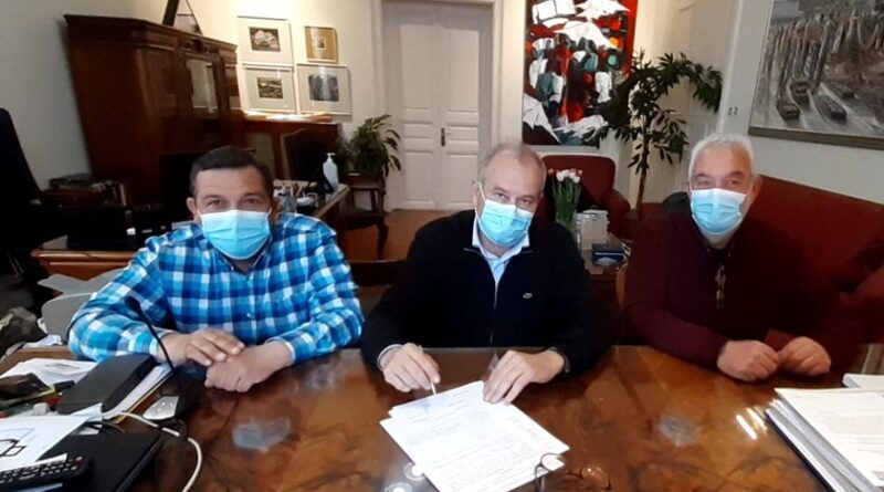 Ο Δήμαρχος Καβάλας, Θόδωρος Μουριάδης και οι εκπρόσωποι της αναδόχου εταιρείας, Αντώνης Πρασίνης και Παναγιώτης Τσάντας, υπέγραψαν τη σύμβαση “Συντηρήσεις σχολικών κτηρίων Δήμου Καβάλας 2020 – 2021. Προϋπολογισμός έργου: 500.000 ευρώ.