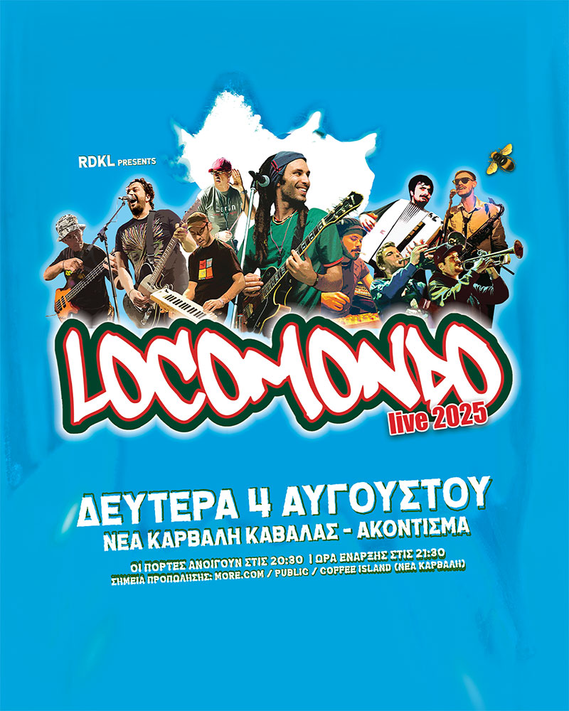 Έχοντας διανύσει χιλιάδες χιλιόμετρα σε σκηνές σε όλη την Ελλάδα (και όχι μόνο), με αμέτρητες live εμφανίσεις στο ενεργητικό τους, οι Locomondo ξέρουν πώς να δίνουν τον παλμό. Με τους “ανεβαστικούς” τους ρυθμούς και τα τραγούδια που έχουμε αγαπήσει – «Δεν κάνει κρύο στην Ελλάδα», «Μαγικό χαλί», «80’s» και φυσικά τον εκρηκτικό τους ήχο από rap, ska, reggae, hip-hop, dub, one drop – κάθε εμφάνισή τους μετατρέπεται σε μια γιορτή χωρίς τέλος.